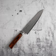 外層採用柔軟的不銹鋼材質,並經過精美的錘紋啞光處理。 Tamahagane San 配有穩定的木質手柄和一體式墊片,是廚房的完美補充。
