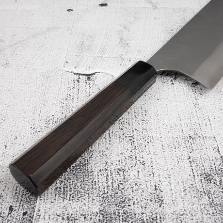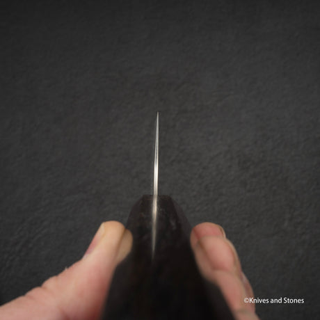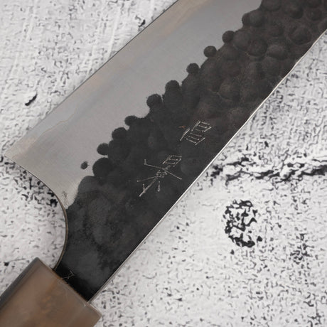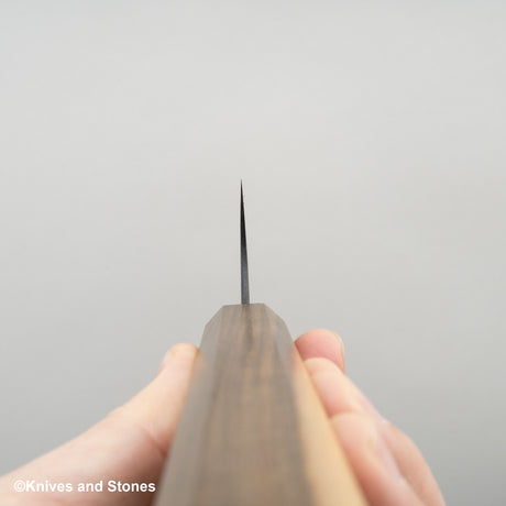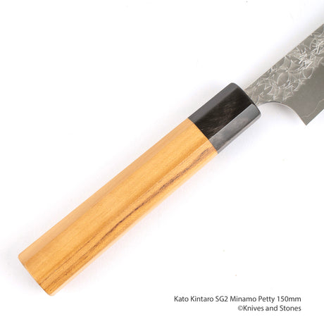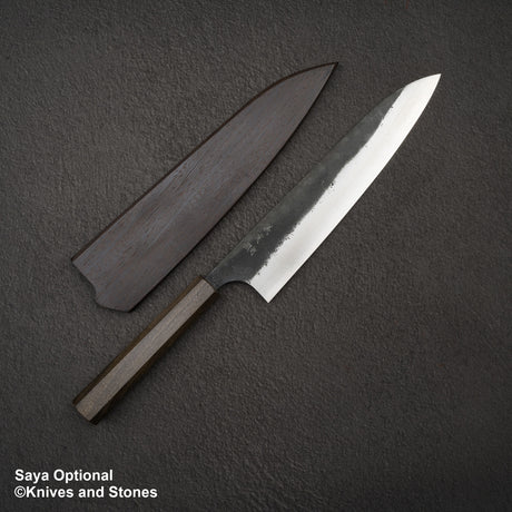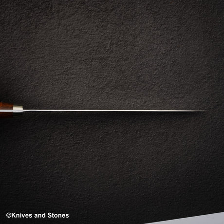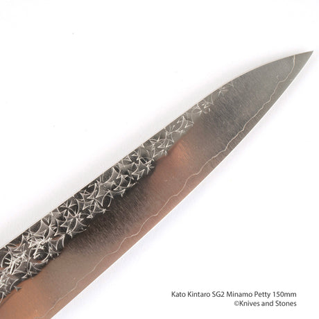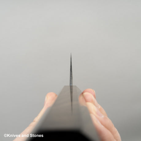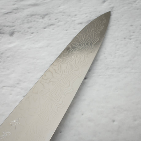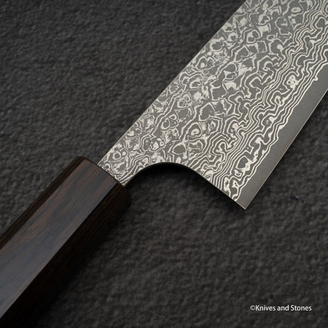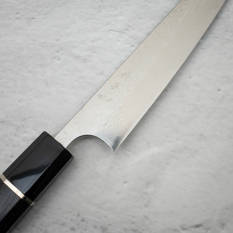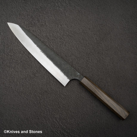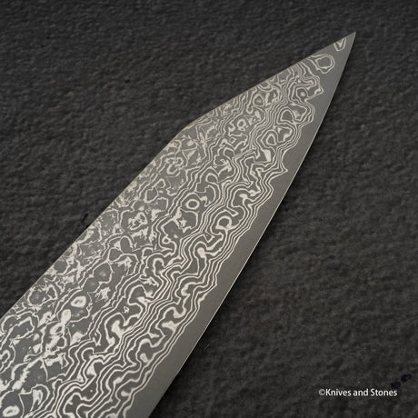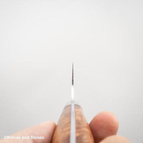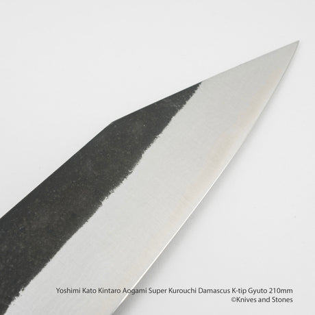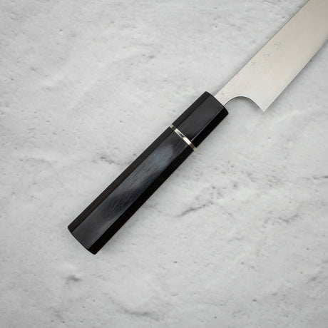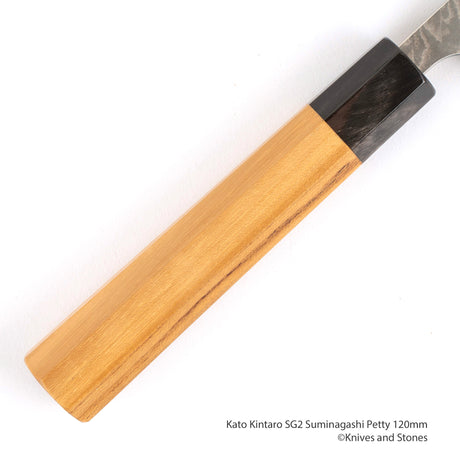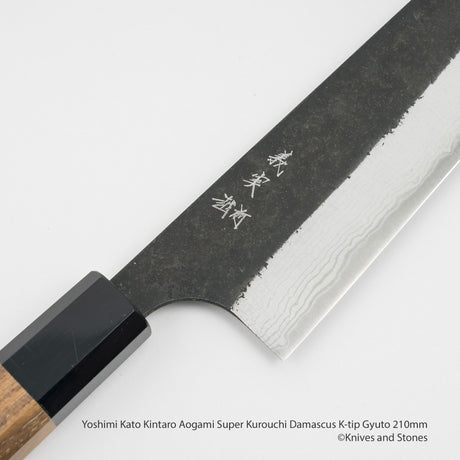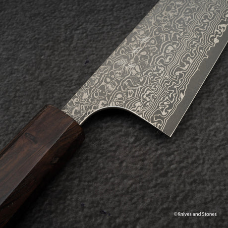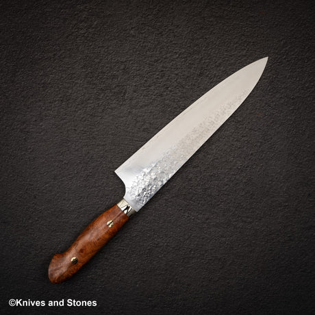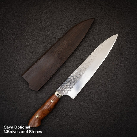 加藤佳美 SG2 Minamo Gyuto 210mm Amboyna Burl Western、Shikakkei Tsuchime