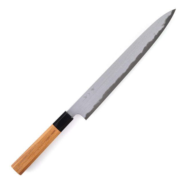 我認為「精緻」這個詞最能形容直人的作品:他的刀不僅擁有久經考驗的切割性能,還擁有市面上頂級的拋光工藝。刀背倒角精美,刀柄拋光得當。刀上刻有他的名字“直人”,可見他對自己的作品引以為豪,我相信您也會喜歡他的刀。