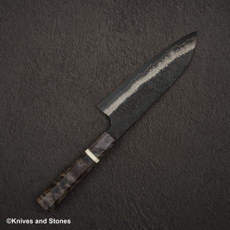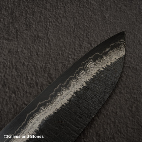 Hatsukokoro Itadaki Blue2 & White2 雙核大馬士革 Tsushime Santoku 180 mm 帶 Saya
