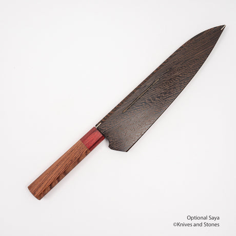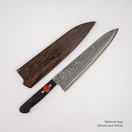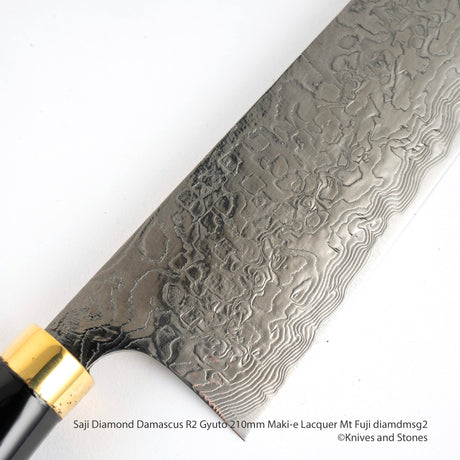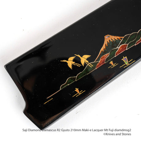 Saji R2 鑽石大馬士革牛刀 210 毫米,富士山蒔繪漆 Saya 和手柄套裝