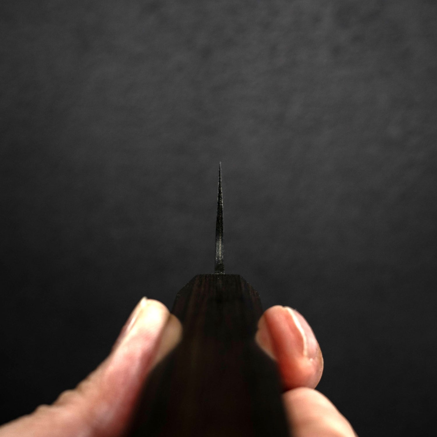 「Aokitae」(青鍛)系列採用醒目的黑打(鍛造)表面處理,帶來樸實粗獷的外觀,同時提供額外的防鏽保護。忠於其土佐血統,刀身比典型的「雷射刀」略為厚實,在繁重備料時帶來紮實耐用與安心的手感。