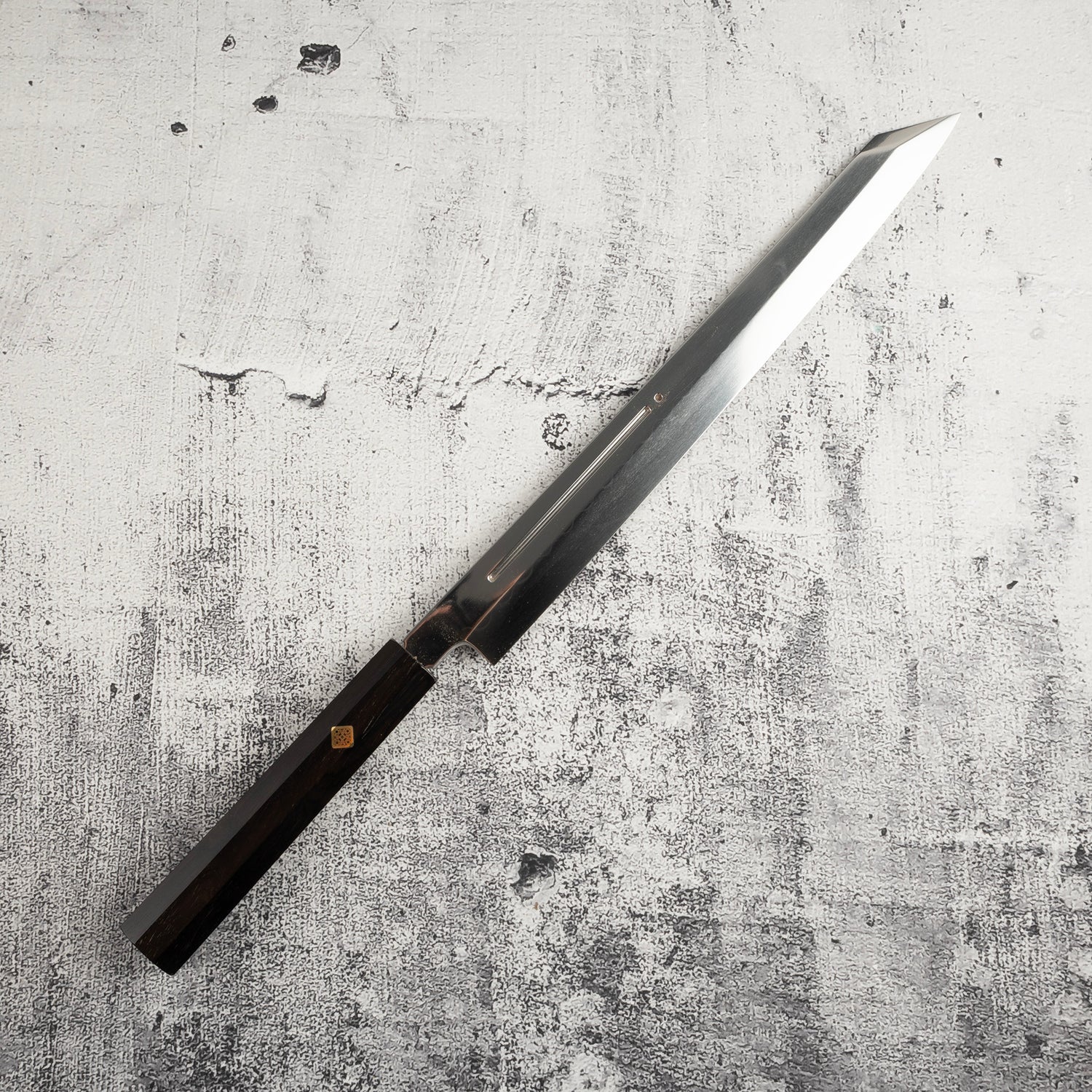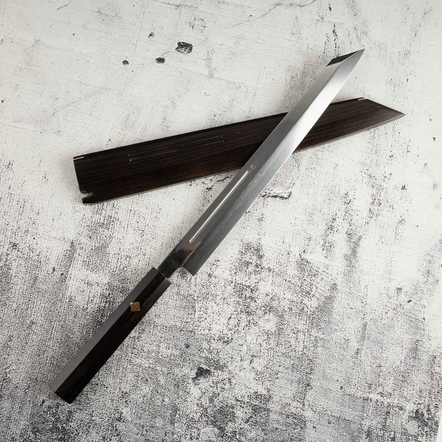 池田美和一 Blue #1 水本燒柳刃 300mm(黑檀鞘與手柄套裝)附血槽