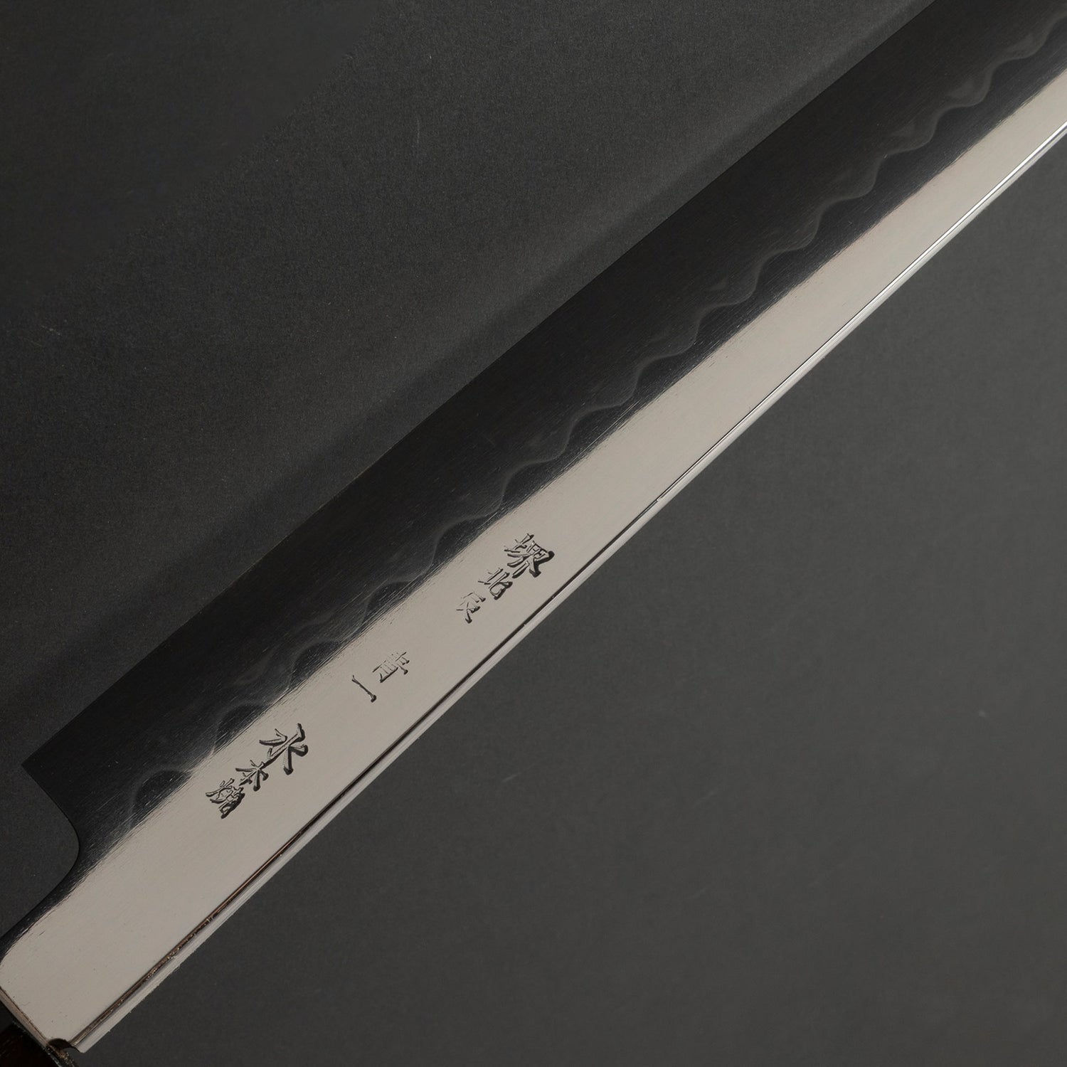 由傳奇刀匠池田美和一於堺鍛造,這把 Blue #1 水本燒柳刃是藝術、傳統與性能完美結合的傑作。