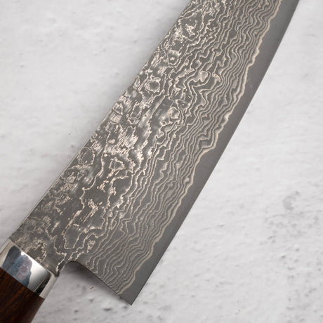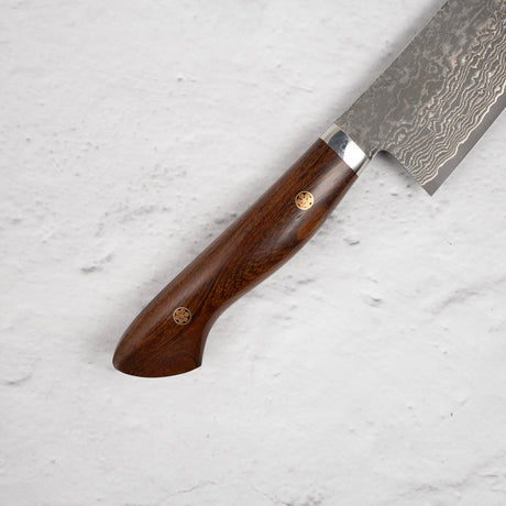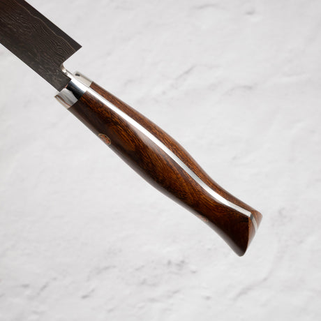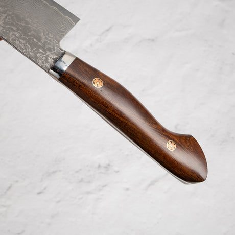 Tanaka R2 大馬士革牛刀 240 毫米,配有鐵木西部手柄和 K&S 雞翅木刀鞘