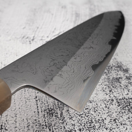 Tanaka R2 蝕刻黑色大馬士革三德刀 165 毫米鐵木手柄