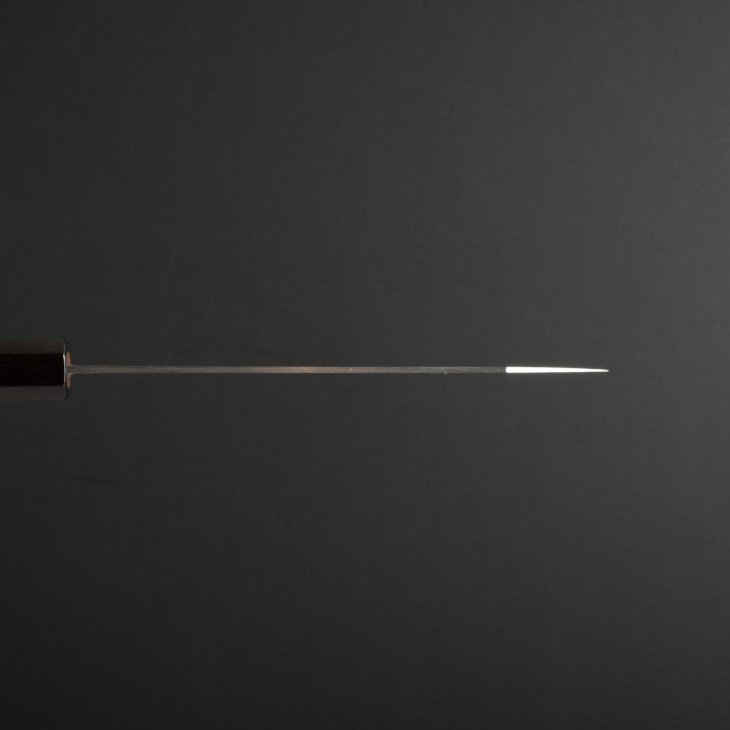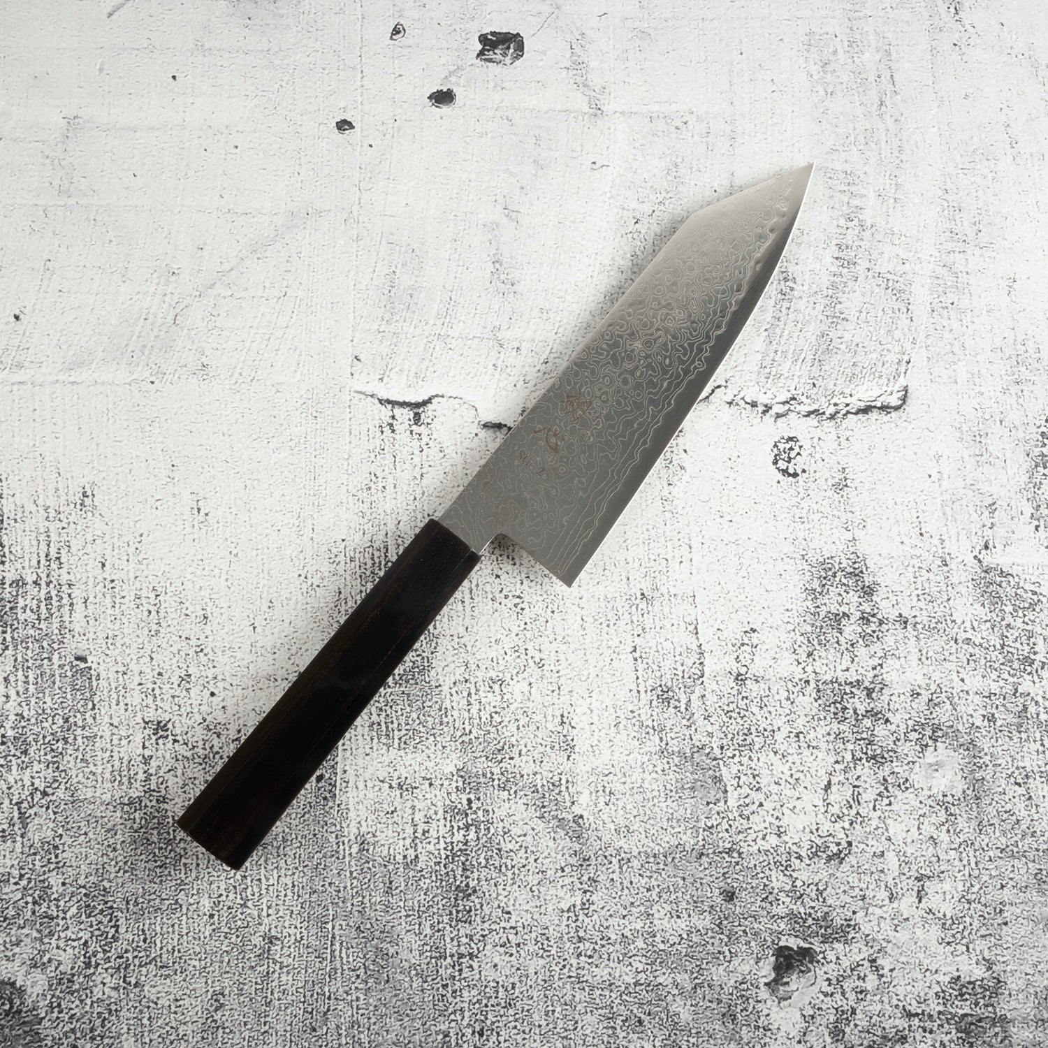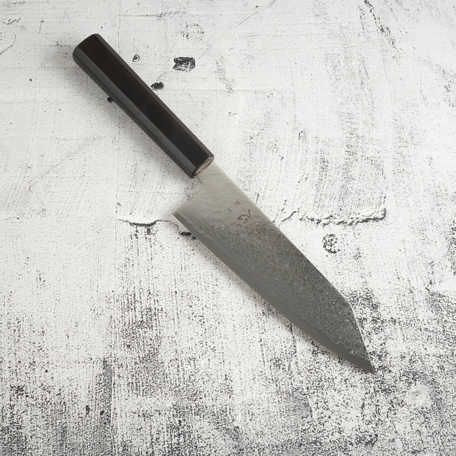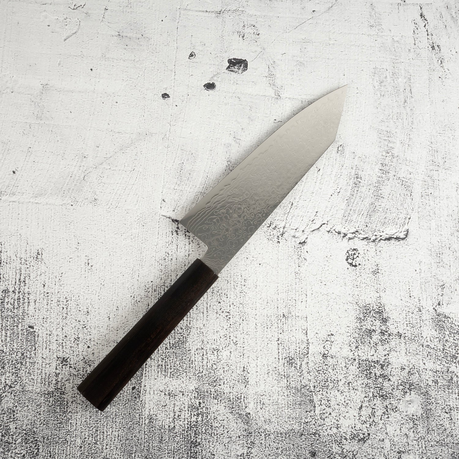 A pointier version of the Santoku. The Bunka knife features a distinctive profile with a straighter edge and a pointed tip, making it versatile for a variety of kitchen tasks. Its design is a blend of the Santoku and Gyuto knives, with a blade length typically around 165mm to 180mm. The Bunka is particularly adept at slicing, dicing, and chopping fruits, vegetables, and meats, thanks to its sharp edge and comfortable handling. The angled tip, also known as a reverse tanto, provides additional precision for intricate tasks such as julienning. With its unique shape and functionality, the Bunka stands out as a multifunctional knife in the culinary world.