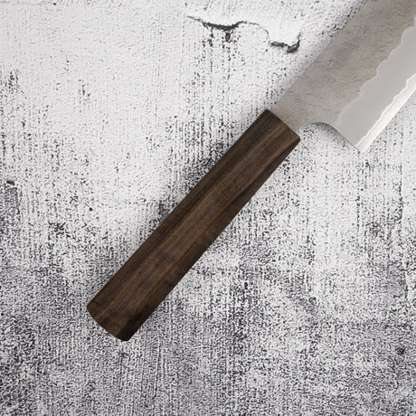 Masakage Koishi AS Santoku 175mm, Aogami Super Kurouchi Tsuchime K&S Hearted-shaped Ironwood Handle