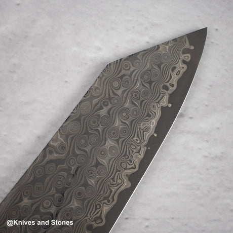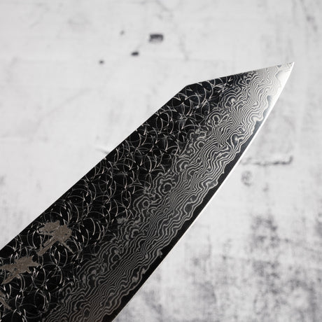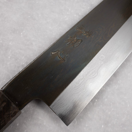 Hatsukokoro x Satoshi Nakagawa Blue 1 Etched Black Damascus K tip Gyuto 210mm