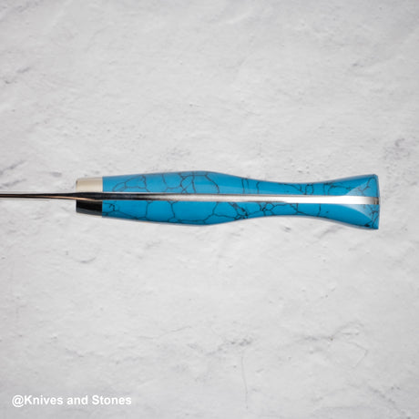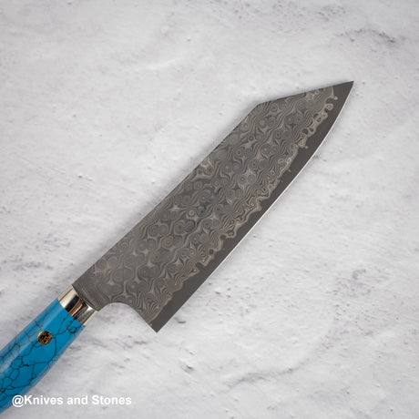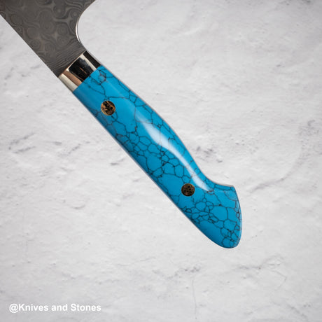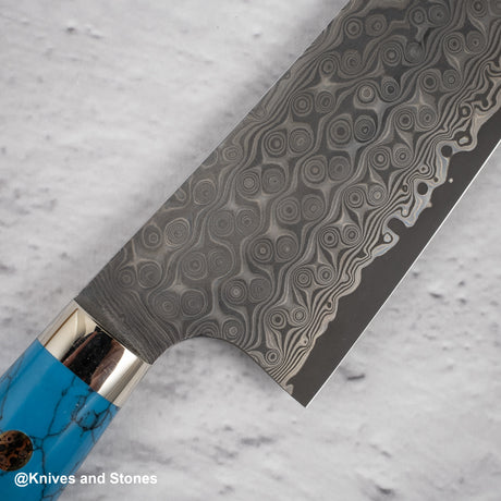 Nigara Anmon (暗紋) SG2 Raindrop Damascus Bunka 180mm Western Blue Turquoise