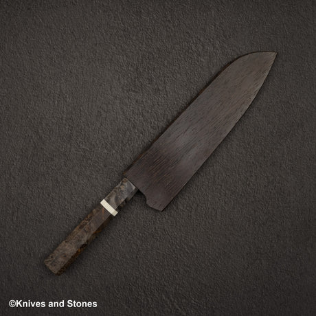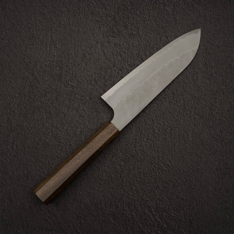 Nigara Aogami (Blue) Super Matt Kurouchi Tsuchime Finished Santoku 180mm Black Chacate