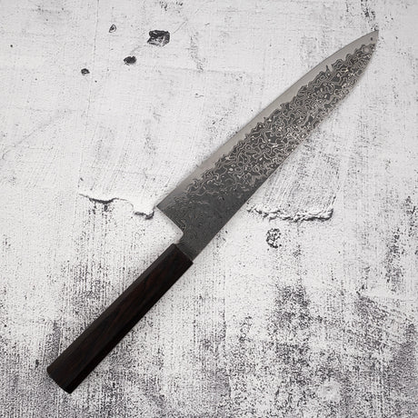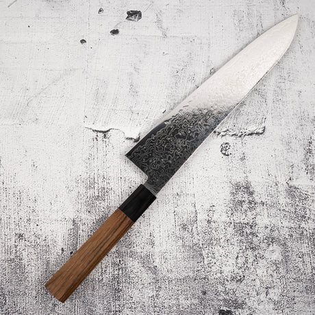 Hatsukokoro Ginsan Damascus Tsuchime Gyuto 210/240mm with Teak Wood Handle, by Yoshihiro Yauji