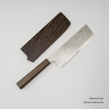 Hatsukokoro Ginsan Damascus Tsuchime Nakiri 170 mm with Teak wood Handle, by Yoshihiro Yauji