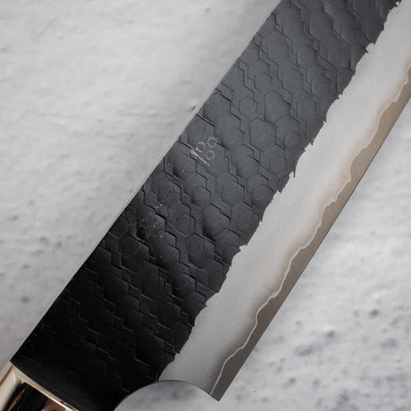 Hatsukokoro x Satoshi Nakagawa Blue 1 Etched Black Damascus K tip Gyuto 210mm