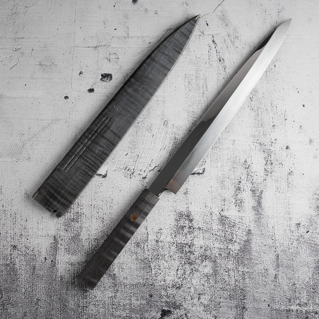 An ideal choice for professional chefs and discerning collectors, the Genkai Masakuni Mizu-Honyaki Yanagiba represents the ultimate expression of Japanese knife artistry.