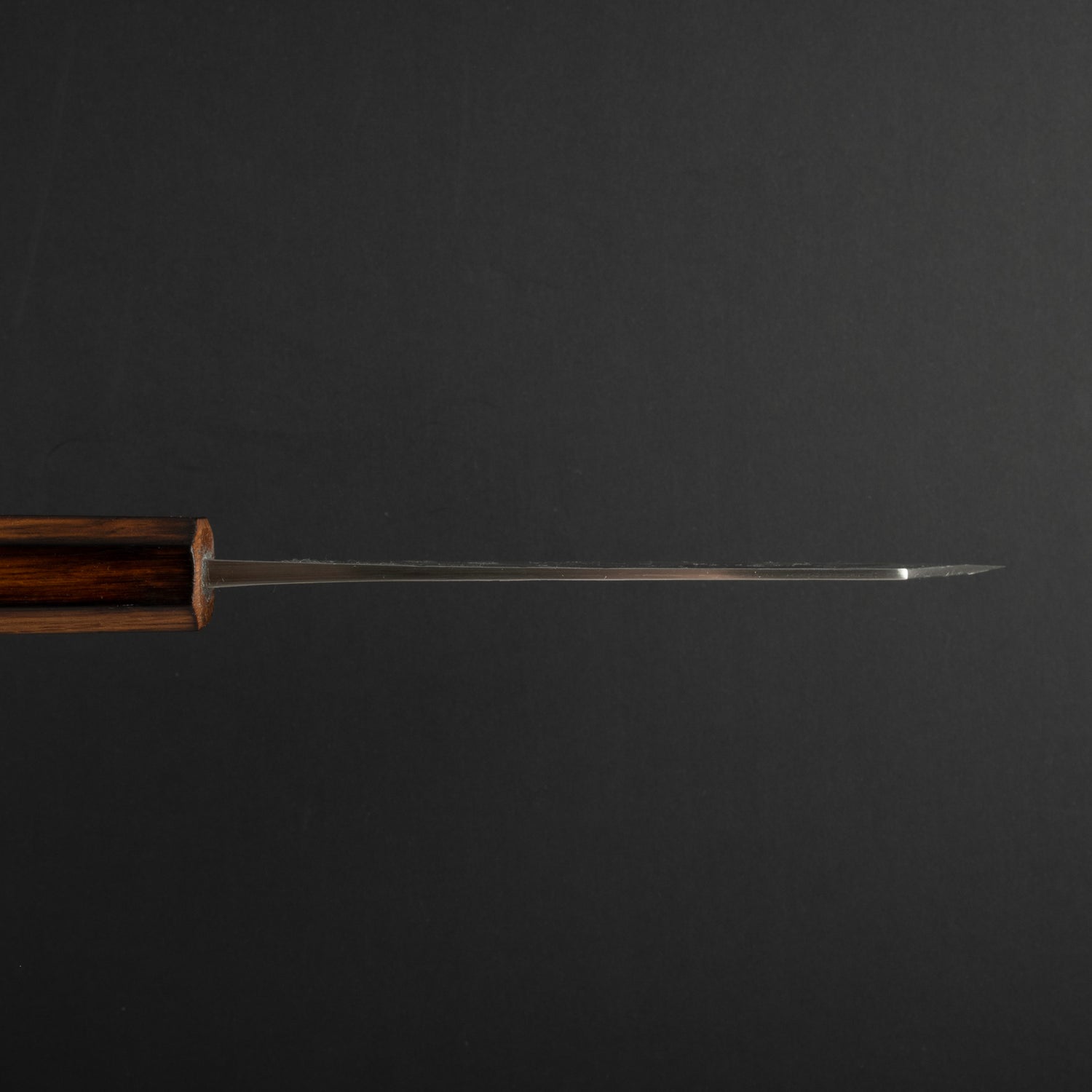 A pointier version of the Santoku. The Bunka knife features a distinctive profile with a straighter edge and a pointed tip, making it versatile for a variety of kitchen tasks. Its design is a blend of the Santoku and Gyuto knives, with a blade length typically around 165mm to 180mm. The Bunka is particularly adept at slicing, dicing, and chopping fruits, vegetables, and meats, thanks to its sharp edge and comfortable handling. The angled tip, also known as a reverse tanto, provides additional precision for intricate tasks such as julienning. With its unique shape and functionality, the Bunka stands out as a multifunctional knife in the culinary world.