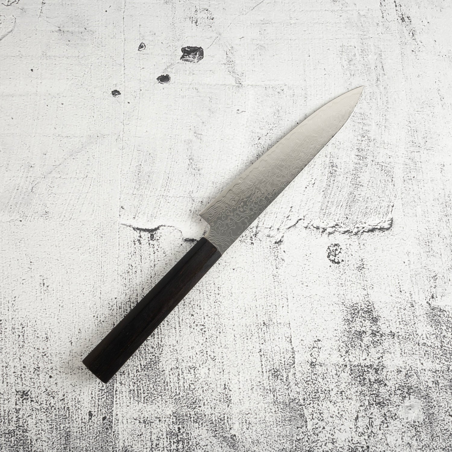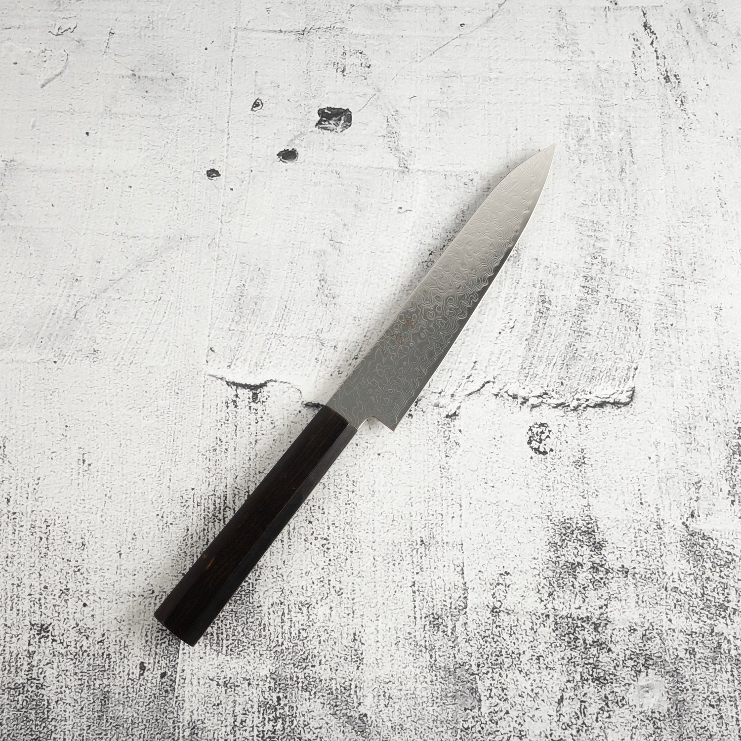 Hatsukokoro Ryuhyo SG2 Damascus Petty 150mm Ebony Handle is backordered and will ship as soon as it is back in stock.