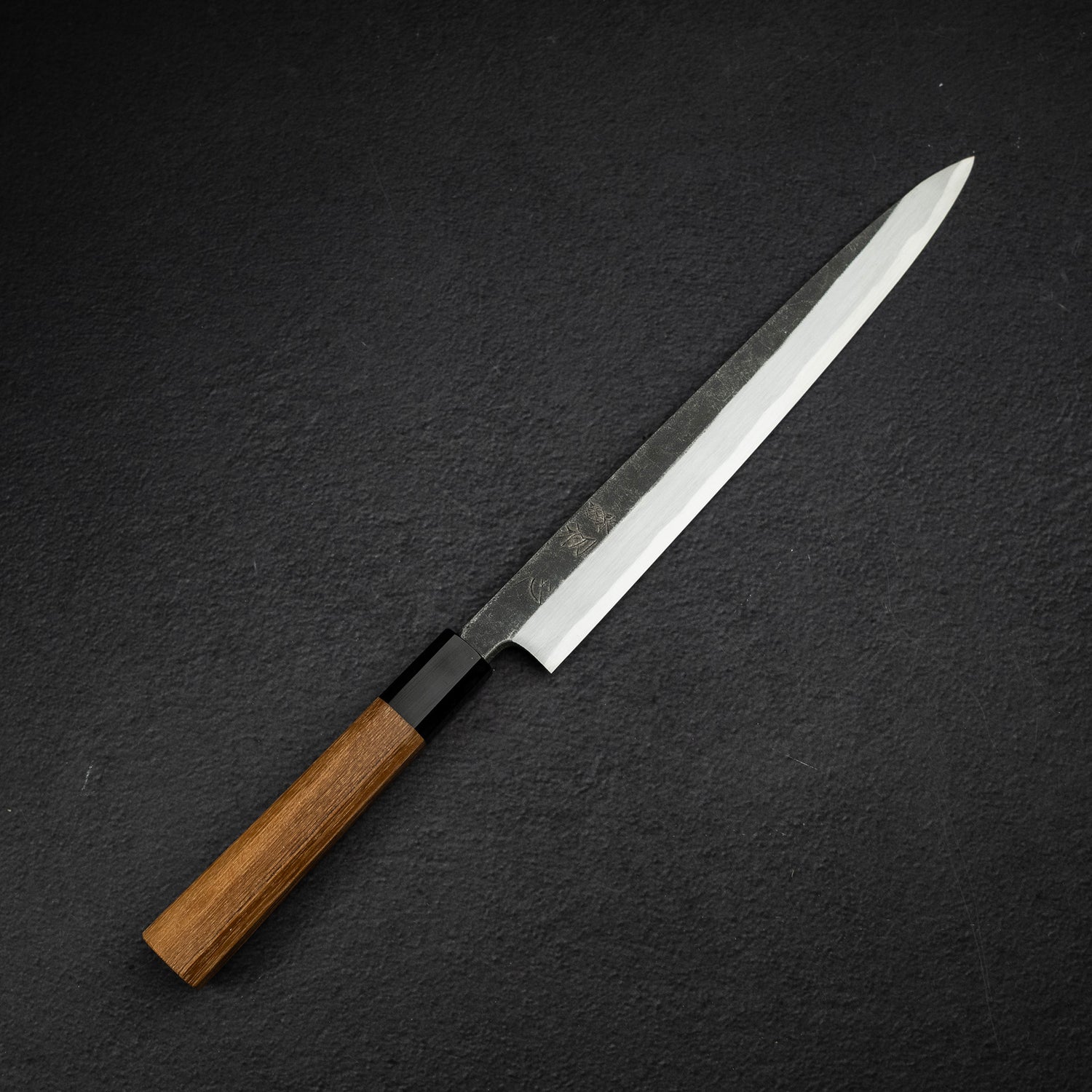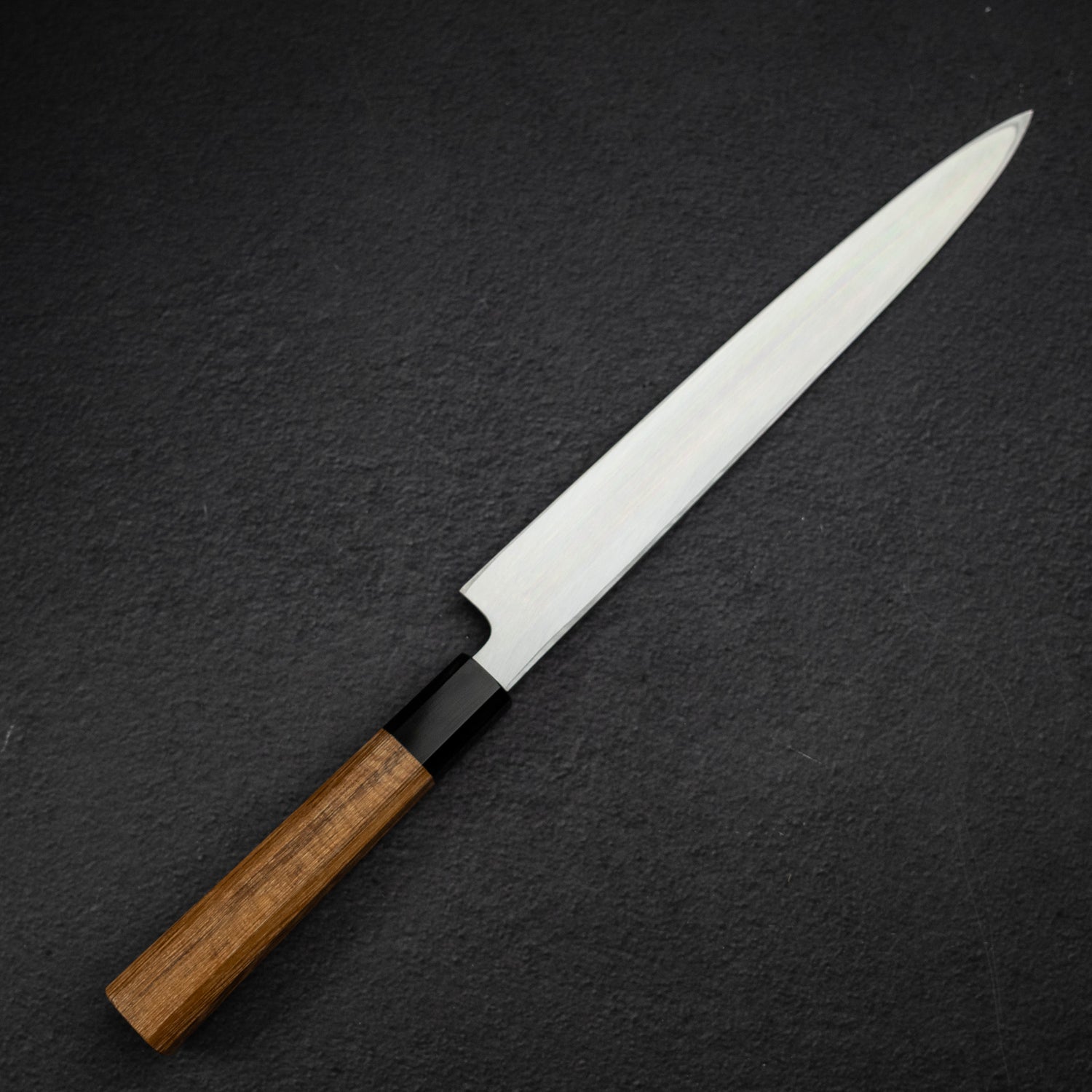 The Yanagiba, often simply called Yanagi, stands as a quintessential knife in the Japanese culinary realm, specifically designed for the artful preparation of sashimi, sushi, and sliced raw fish and seafood. As a member of the Sashimi hōchō family, it is celebrated for its long, slender blade that ensures precision cuts with minimal effort. Blade lengths start at approximately 210mm and can extend up to 360mm, with the 240mm and 270mm sizes being the most favored for home use, while professional kitchens frequently opt for 300mm and larger. This knife's design is not just about aesthetics but about fulfilling the precise requirements of Japanese cuisine, making it a vital tool for both amateur and seasoned chefs.