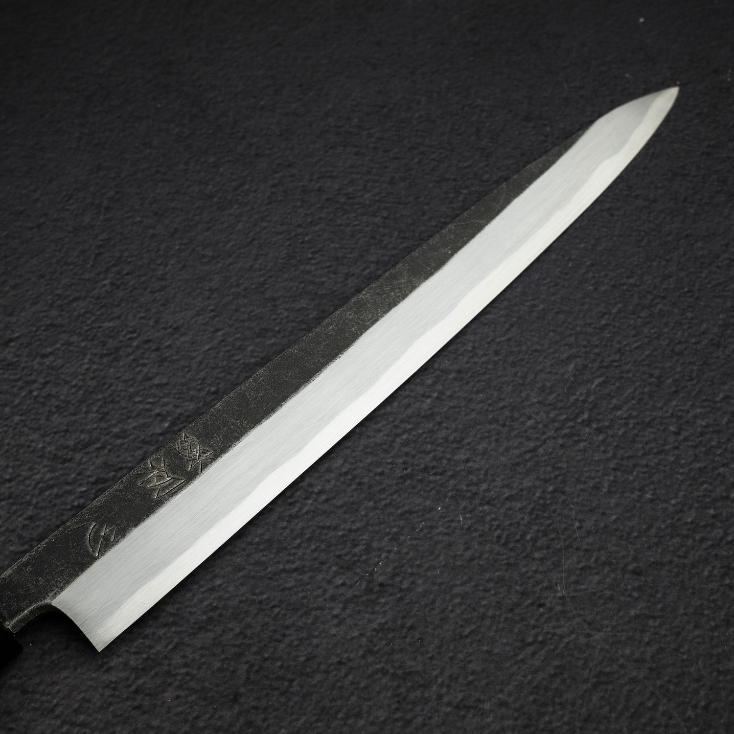 This line as a single bevel line, is sharpened by Tateo Myojin(明神 健) and forged by Toru Tamura(田村 徹). Rarely, you can find not only the traditional profiles like yanagiba in this line, but also modern shapes like gyuto, all made in single bevel fashion. The fit and finish is superb as expected from Myojin Riki Seisakusho, a very uniform finish can be seen across the entire blade, even on the Kissaki of the Sakimaru Yanagiba, some other knives at highter price can have some trouble achieving that. Hatsukokoro have given this well-finished line a well deserved name Kirasagi(Little Egret), the smooth polish working in conjunction with the Kurouchi finishi, match the elegant white feather and dark beak of egret perfectly.