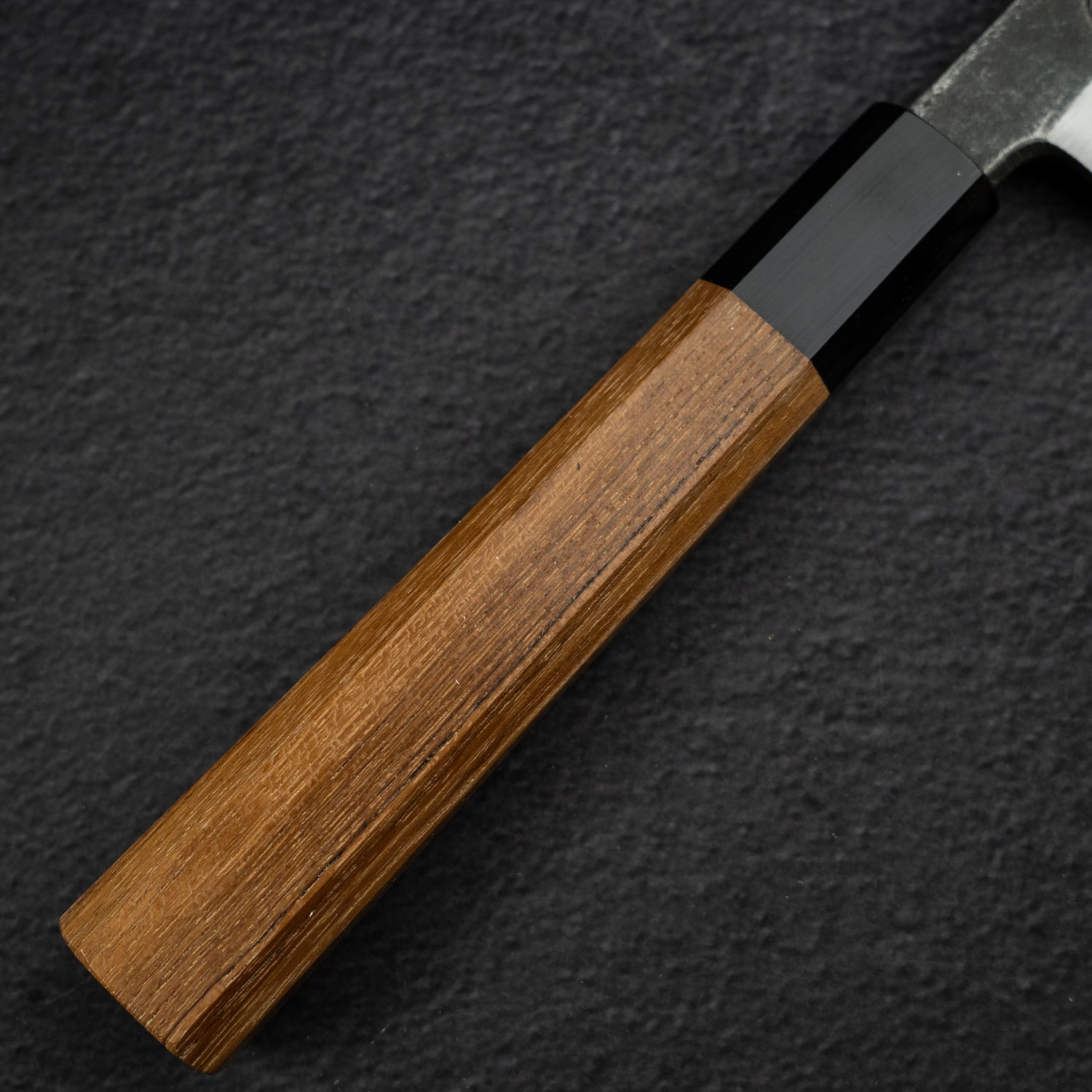 Nimai(Two Piece) is the Japan's traditional approach to the kitchen knife making, this construction method is typically found on knives with native Japanese origins like Yanagiba, Deba and Usuba. When constructing a Nimai knife, a piece of soft cladding metal will be placed onto a core steel, the two pieces of metal are then forgewelded and shaped into the knife.