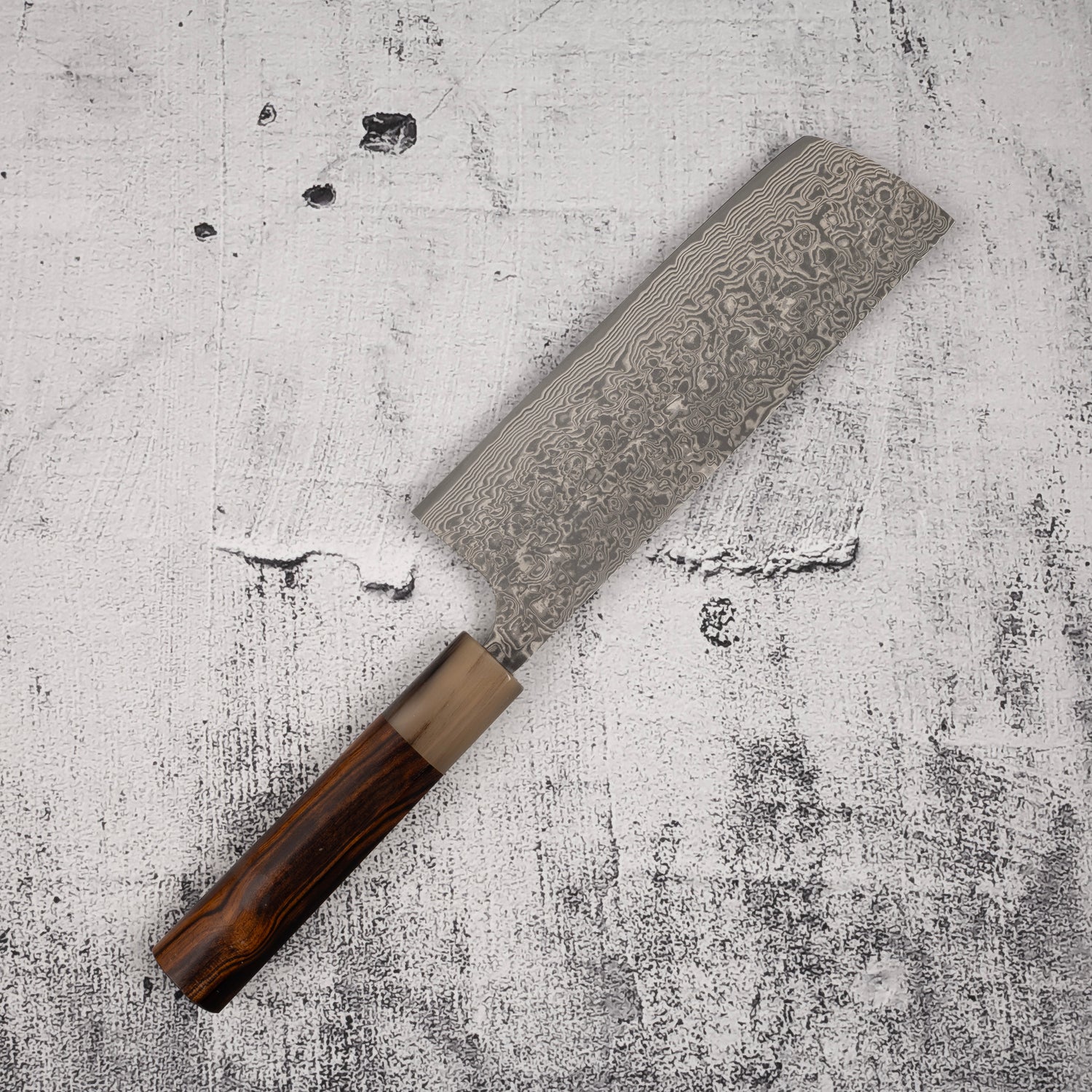 Takeshi Saji SG2 Black Damascus Nakiri 180mm Heart-shaped Ironwood Handle is backordered and will ship as soon as it is back in stock.