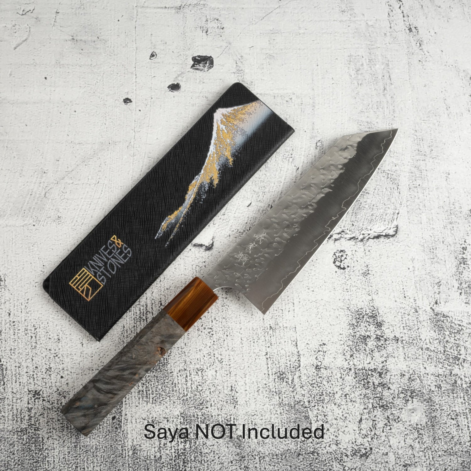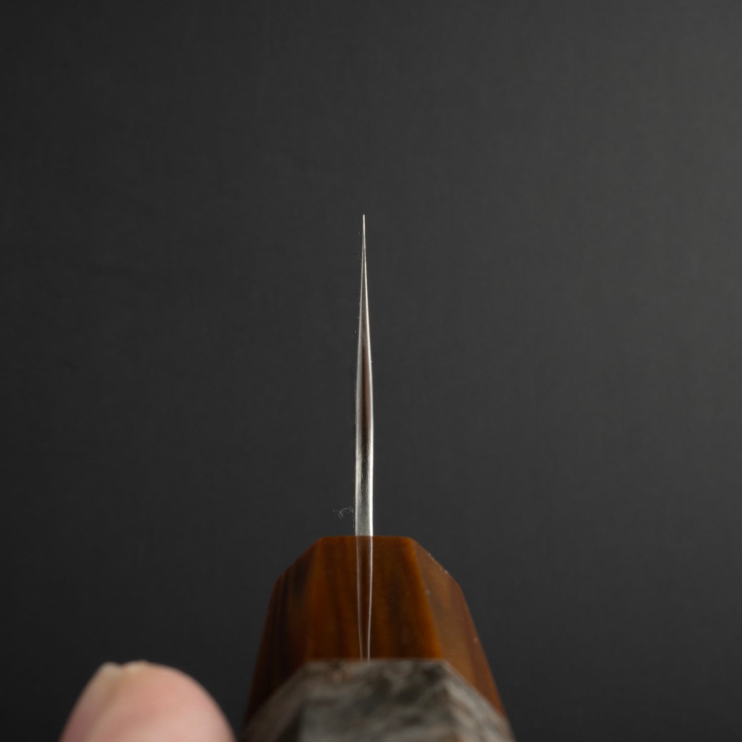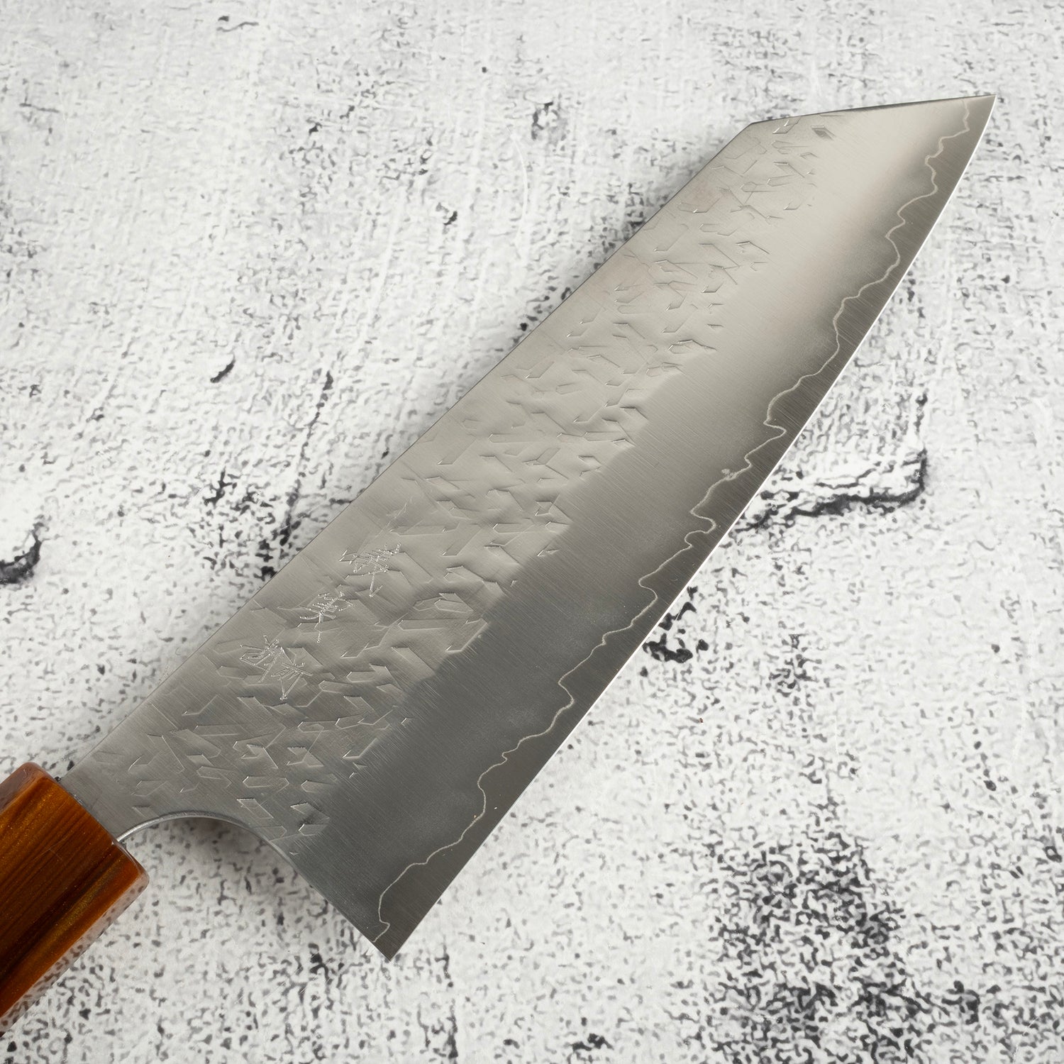 A pointier version of the Santoku. The Bunka knife features a distinctive profile with a straighter edge and a pointed tip, making it versatile for a variety of kitchen tasks. Its design is a blend of the Santoku and Gyuto knives, with a blade length typically around 165mm to 180mm. The Bunka is particularly adept at slicing, dicing, and chopping fruits, vegetables, and meats, thanks to its sharp edge and comfortable handling. The angled tip, also known as a reverse tanto, provides additional precision for intricate tasks such as julienning. With its unique shape and functionality, the Bunka stands out as a multifunctional knife in the culinary world.