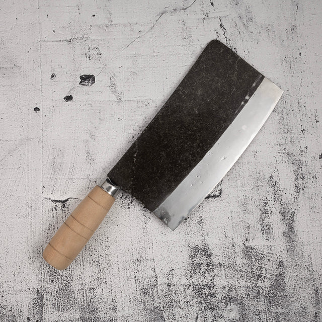 中式菜刀在市場上相當罕見,因為它對中國以外的大多數用戶來說並不熟悉。很多人可能聽說過這是中國廚師唯一使用的刀型,而且它非常適合切菜和把菜舀進鍋裡,我可以證實這兩點都是真的。我們面臨的問題是,由於需求低迷,很少有製造商願意開發一款鍛造精良且核心鋼材與之匹配的產品。即使是以製造優質中式菜刀而聞名的杉本(Sugimoto)品牌,他們的中式菜刀也是用扁鋼製成的,沒有任何鍛造痕跡。