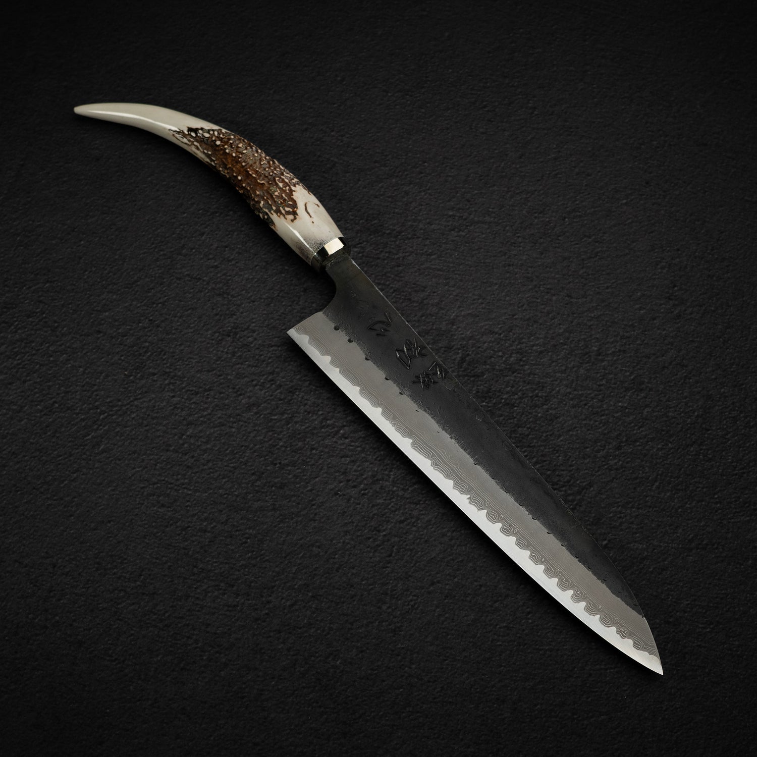 初心 蜃氣樓 超級青鋼 / 青紙超級鋼 牛刀 240mm 大馬士革 黑打 鹿角 柄