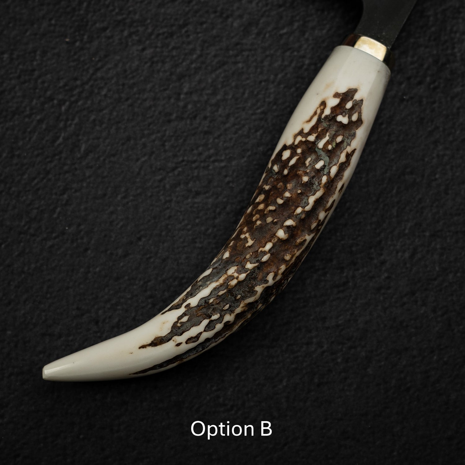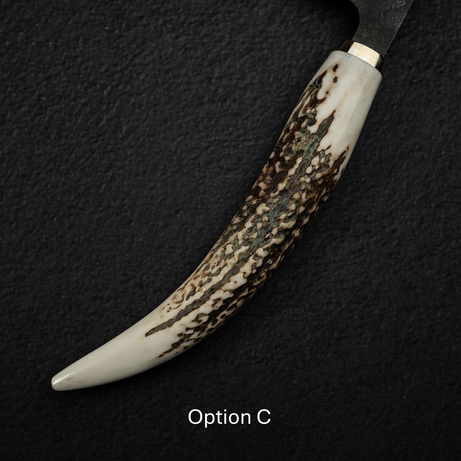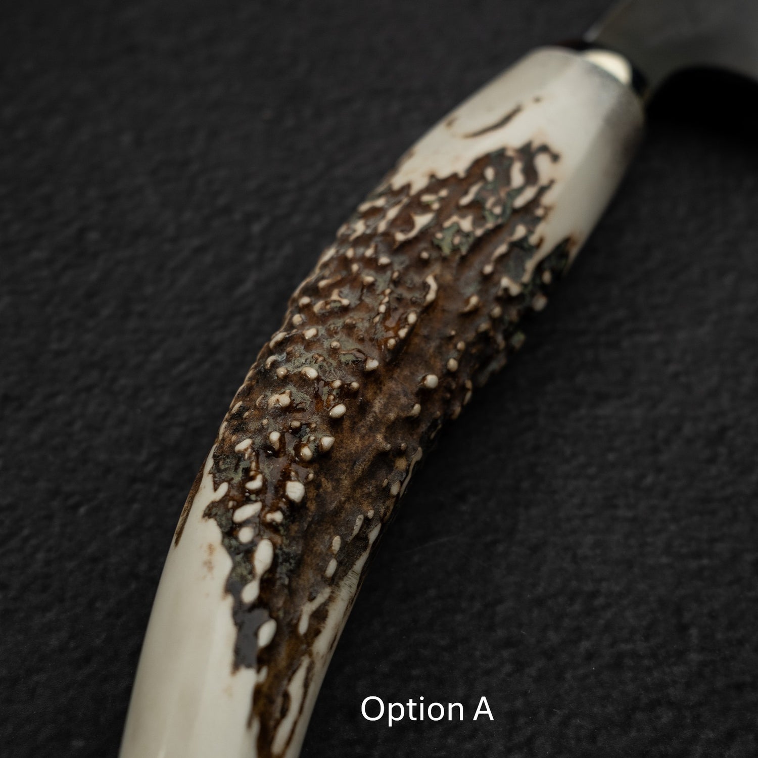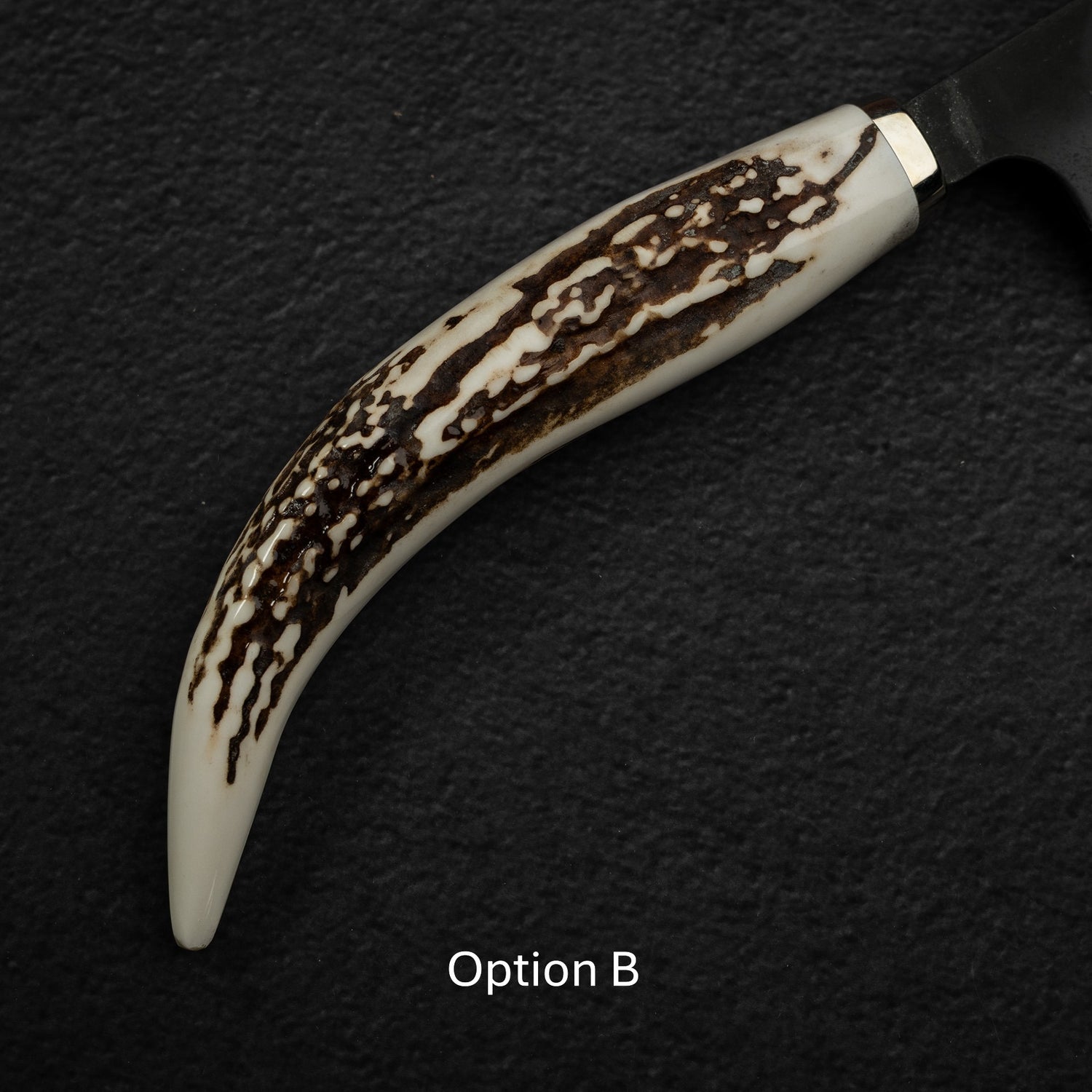 初心 蜃氣樓 超級青鋼 / 青紙超級鋼 牛刀 240mm 大馬士革 黑打 鹿角 柄 - 選項 A 已缺貨,一旦有貨就會出貨。